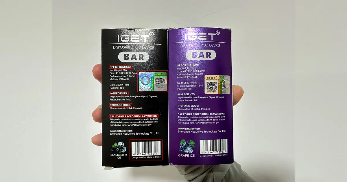 For businesses engaged in disposable vape Wholesale, visual auditing of inventory is essential. Genuine IGET packaging uses a specific UV-cured ink that produces a slight “raised” texture on the brand logo. If you run your finger over the “IGET” text on the box, it should feel distinct from the background. Clones typically use flat offset printing which lacks this tactile security feature. Additionally, pay close attention to the “3500 Puffs” badge. On authentic boxes, this is printed with a metallic foil finish that glints under direct light; on fakes, it is often a simple yellow or gold ink.
